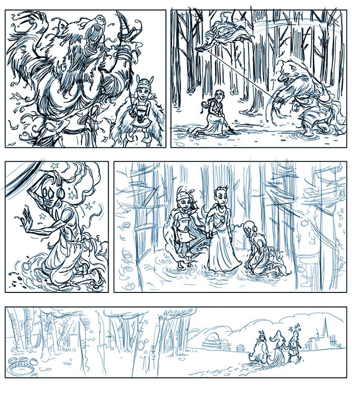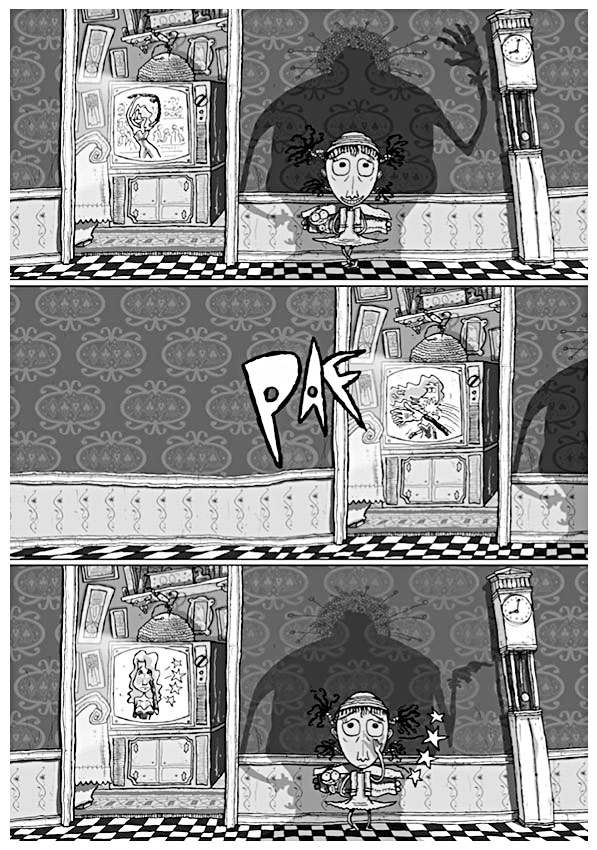 El cómic consta de cuatro historias cortas de once páginas cada una. La primera, «Buscando a Triste», narra una etapa en el viaje de Tristán a través de un mundo de fantasía medieval en busca de su mejor amiga, perdida hace años. La segunda historia, «Esbozos de idiotez», cuenta las peripecias cotidianas de un dibujante novel frustrado con su día a día. «No tengo», tercer capítulo, es un pequeño episodio sin textos en el que una niña intenta superar la censura que el mundo que la rodea parece empeñado en imponerle. Por último, en «Bela y Georgina», dos hermanas tienen que lidiar con el error que una de ellas cometió al haberse internado demasiado en las artes oscuras.