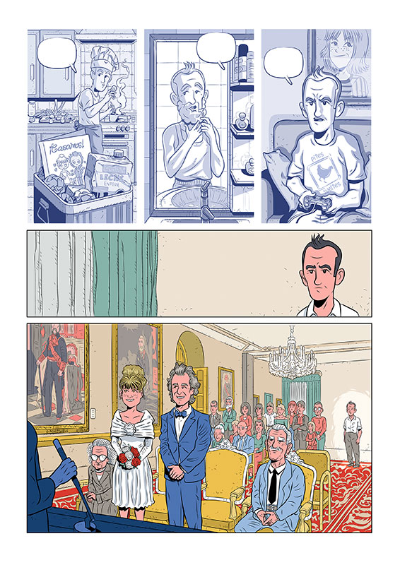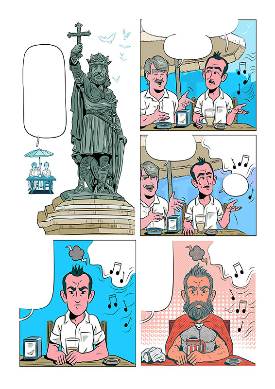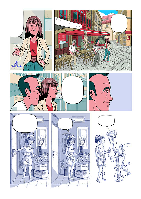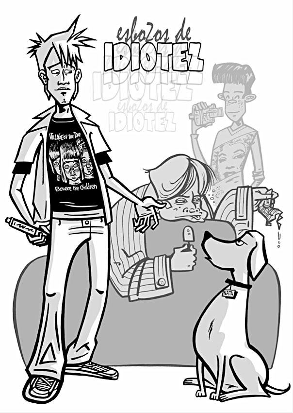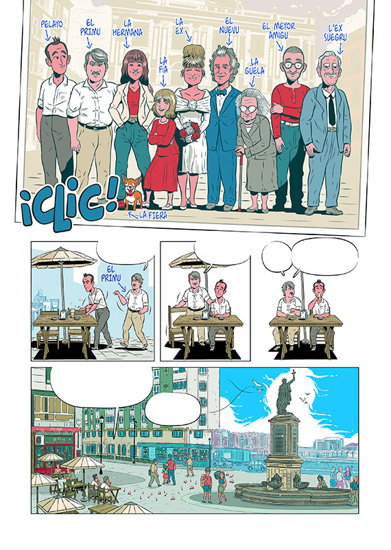 Páginas y diseños de una serie de cómics publicados y proyectos inéditos. El cómic es un lenguaje universal evolucionado de la comunicación primaria a través de dibujos y aderezado con características de la fotografía, la literatura y el cine. Todo ello combinado con propiedades propias generadas a través de un desarrollo sostenido en el tiempo dan lugar a una forma de arte y comunicación rica , compleja y dinámica. En su vertiente más efímera, el humor gráfico, el formato se comprime y el significado se expande en su mensaje, humor, y en su forma más reflexiva e irreverente.